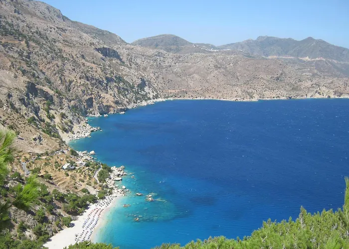 De Haven van Karpathos is binnen 12 minuten lopen ervandaan te vinden.